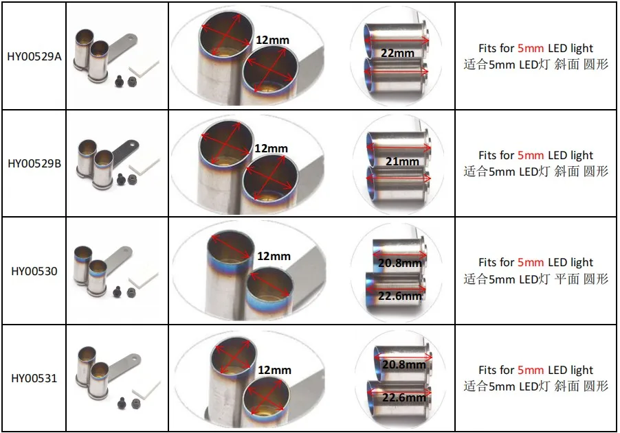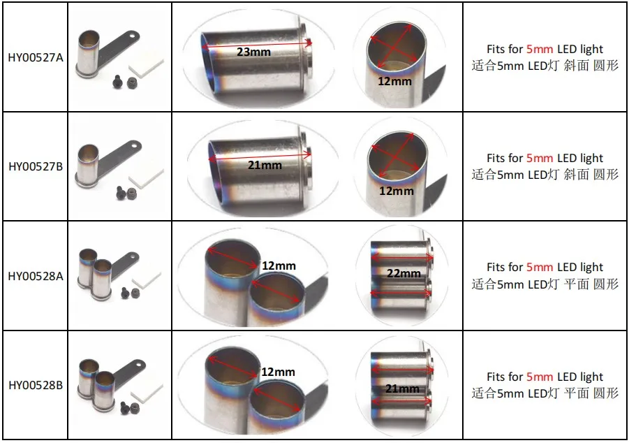 Fits for 3/5mm LED Light (not included). Made from high-quality stainless steel, this exhaust pipe is designed for 1/10 scale RC cars. Its double exhaust design provides improved airflow and performance. The pipe is available in the color and dimension as shown in the picture.