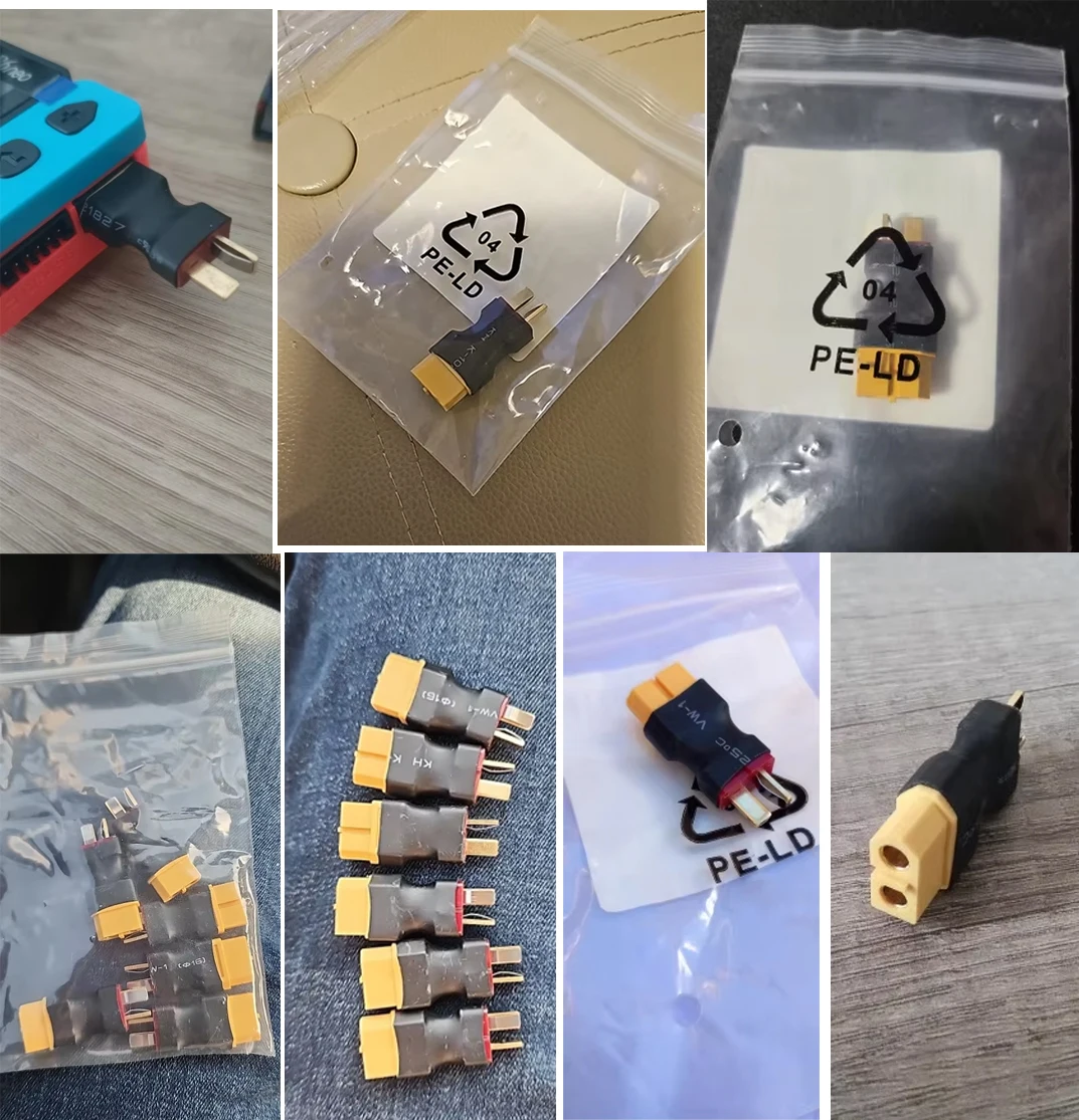 Transfer T plug and XT60 plug equipment with ease using this compact and lightweight adapter for RC airplane and FPV enthusiasts.
