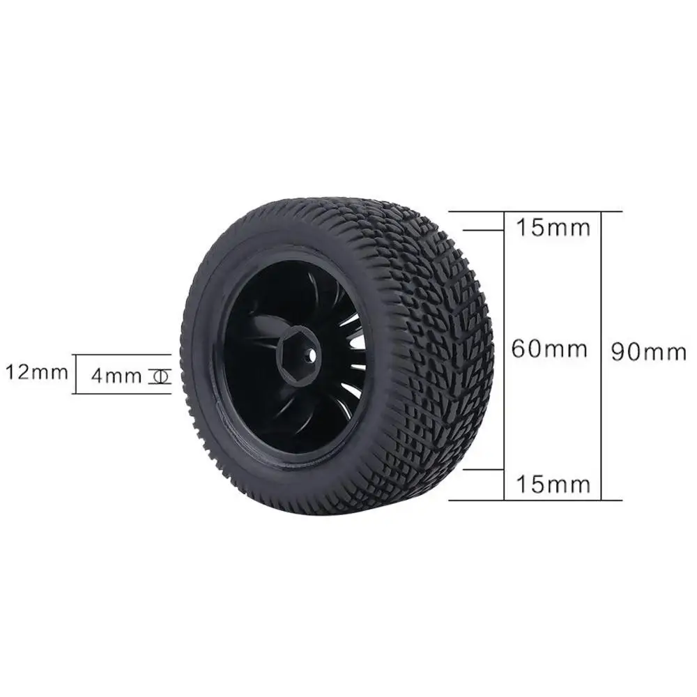 Upgrade your 1:12 RC car racing experience with these durable rubber tires and plastic hubs. Designed for stability and flexibility, they provide a strong grip on the road.