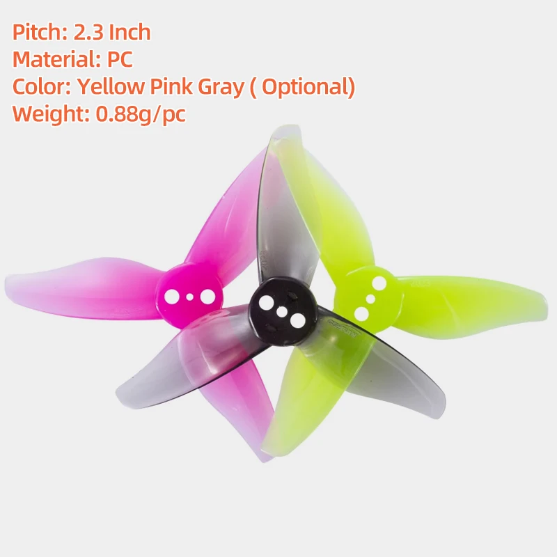 Experience exceptional flight performance with the Gemfan 2023 2×2.3 3-Blade Propeller, designed for RC FPV quadcopters equipped with 1105-1108 brushless motors. This propeller features a durable PC material construction, a 2.3-inch pitch, and a 1.5mm center hole inner diameter. Its 52.17mm prop disk diameter and 5mm center thickness provide a strong and stable flight experience.