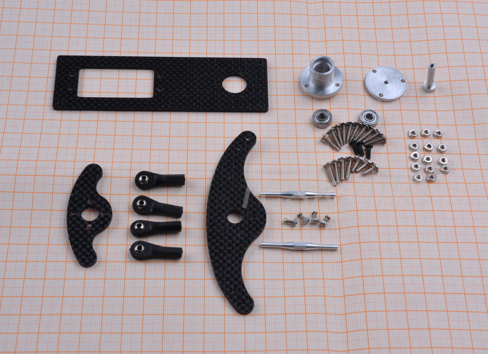 Suitable for 20cc to 50CC class airplanes, this Carbon Fiber Rudder Auxiliary System is designed for precision and reliability. The system features a carbon plate and servo arms CNC machined for zero tolerance and light weight.