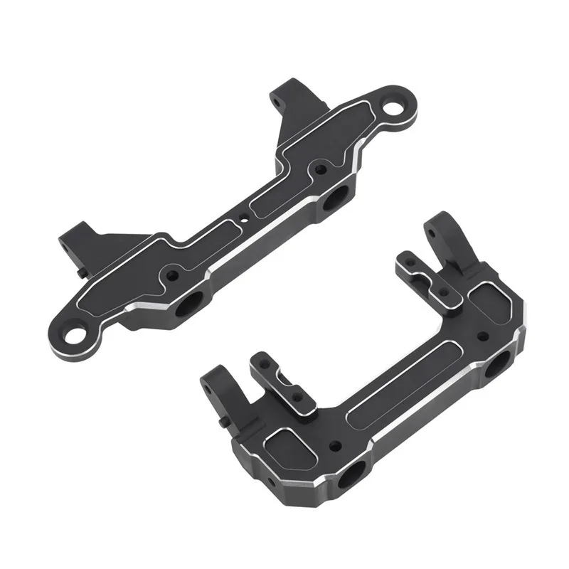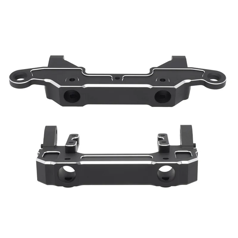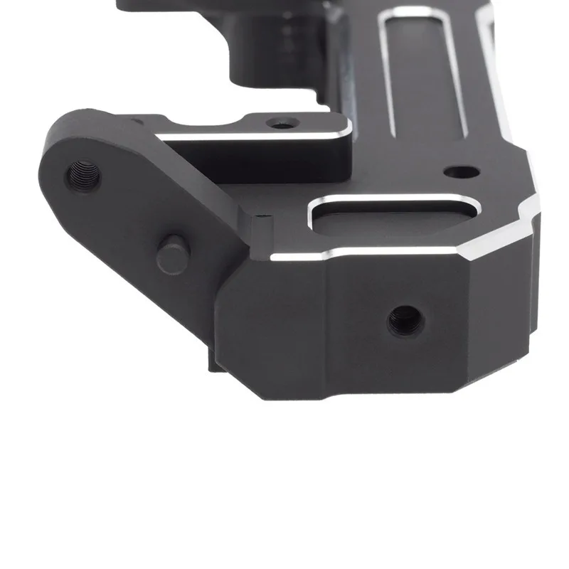 CNC machined aluminum alloy bumper mount bracket for improved durability and stability. Compatible with Axial SCX6 RC crawler cars.
