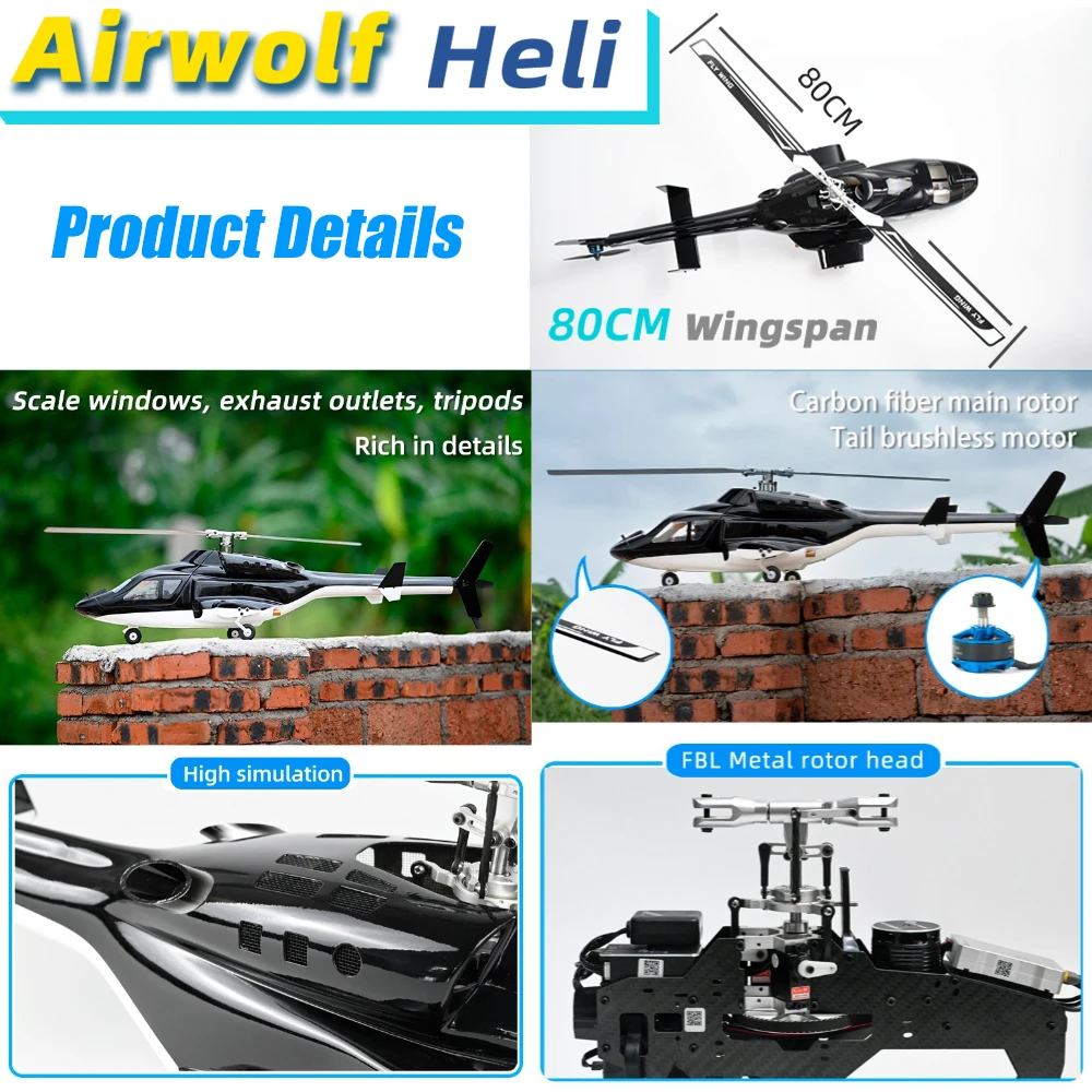 This Airwolf scale RC helicopter is great for kids and adults, upgrade with more functions for more fun. The design is optimized according to the proportion of the original machine. All details and openings are restored as much as possible. Recommended for ages 14 & up.