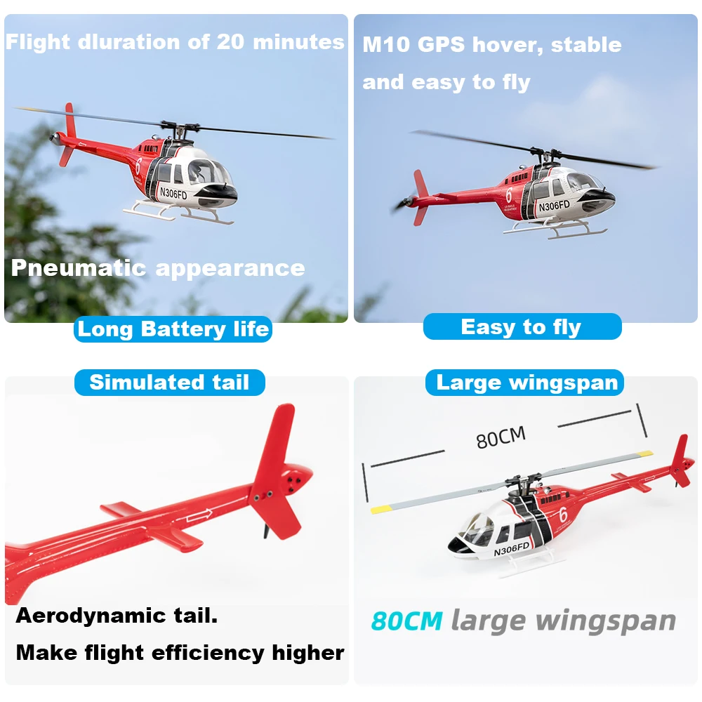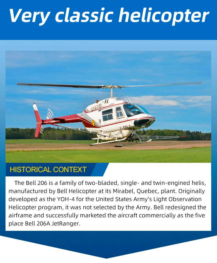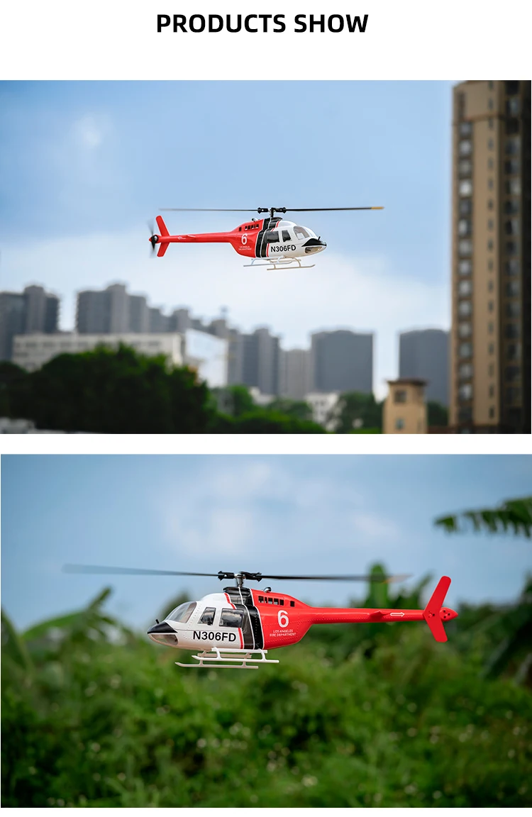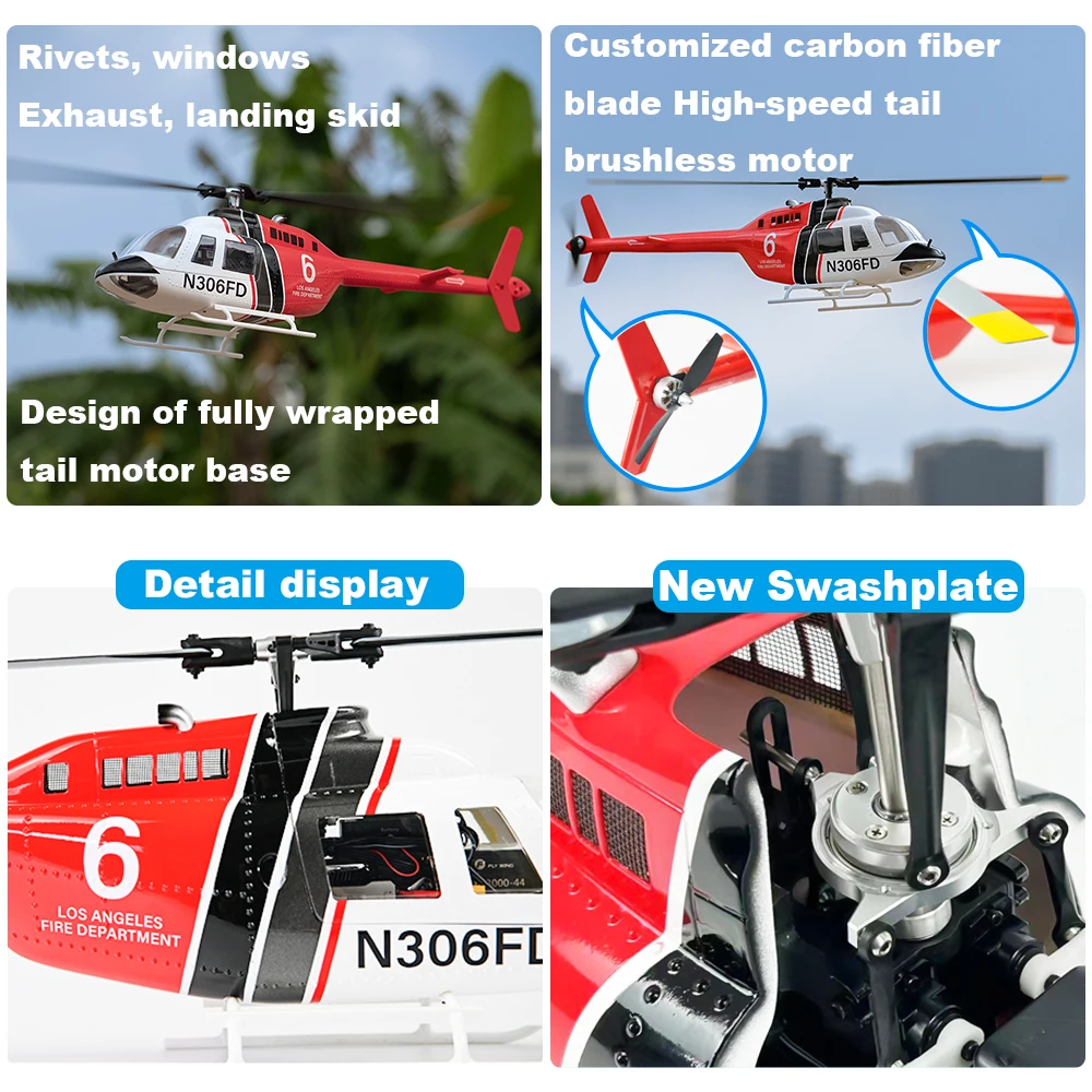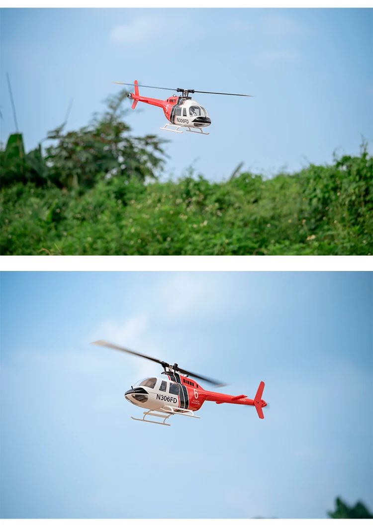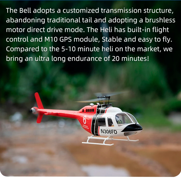 Experience the thrill of flying with the Fly Wing Bell 206 V3 RC Helicopter, a high-performance, 6-channel, brushless motor GPS aircraft with a 450mm wingspan and 1:16 scale.