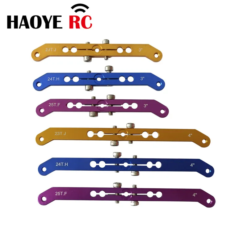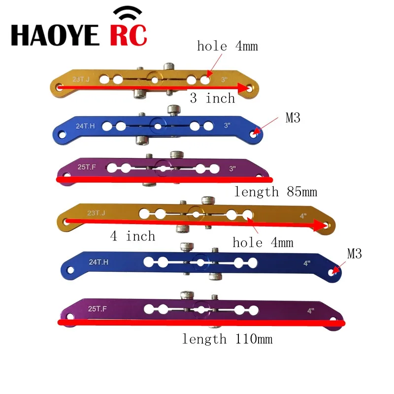 High-quality CNC aluminum servo horn double arm for RC airplanes, available in 3” and 4” sizes. Compatible with JR, Hitec, and Futaba servos.