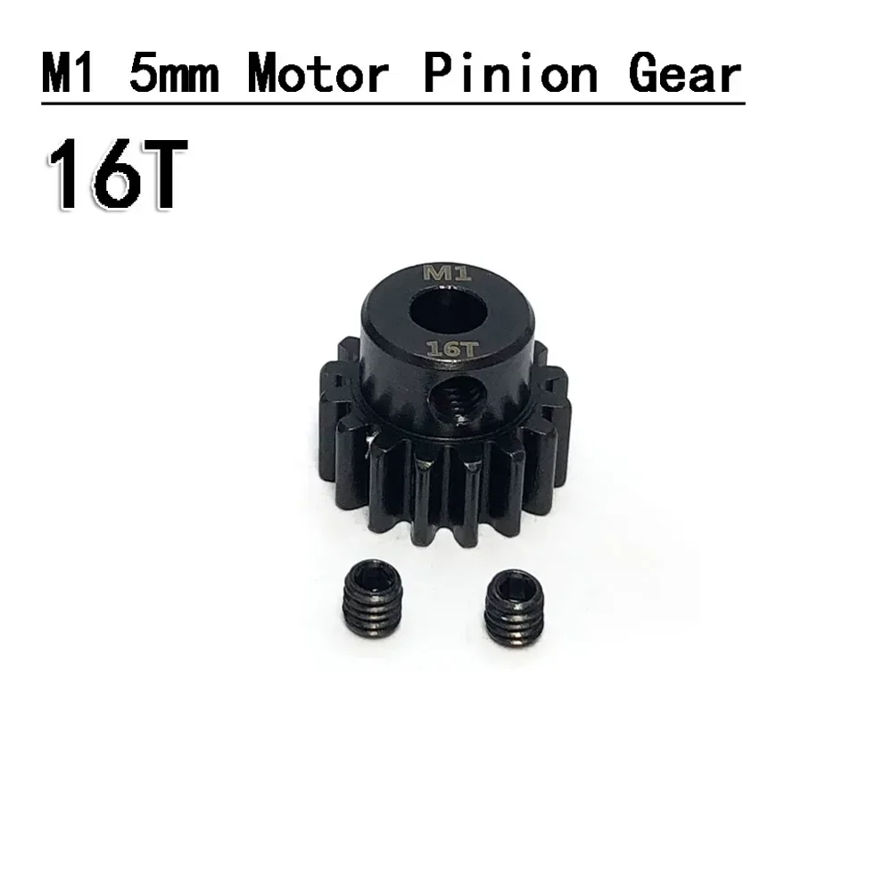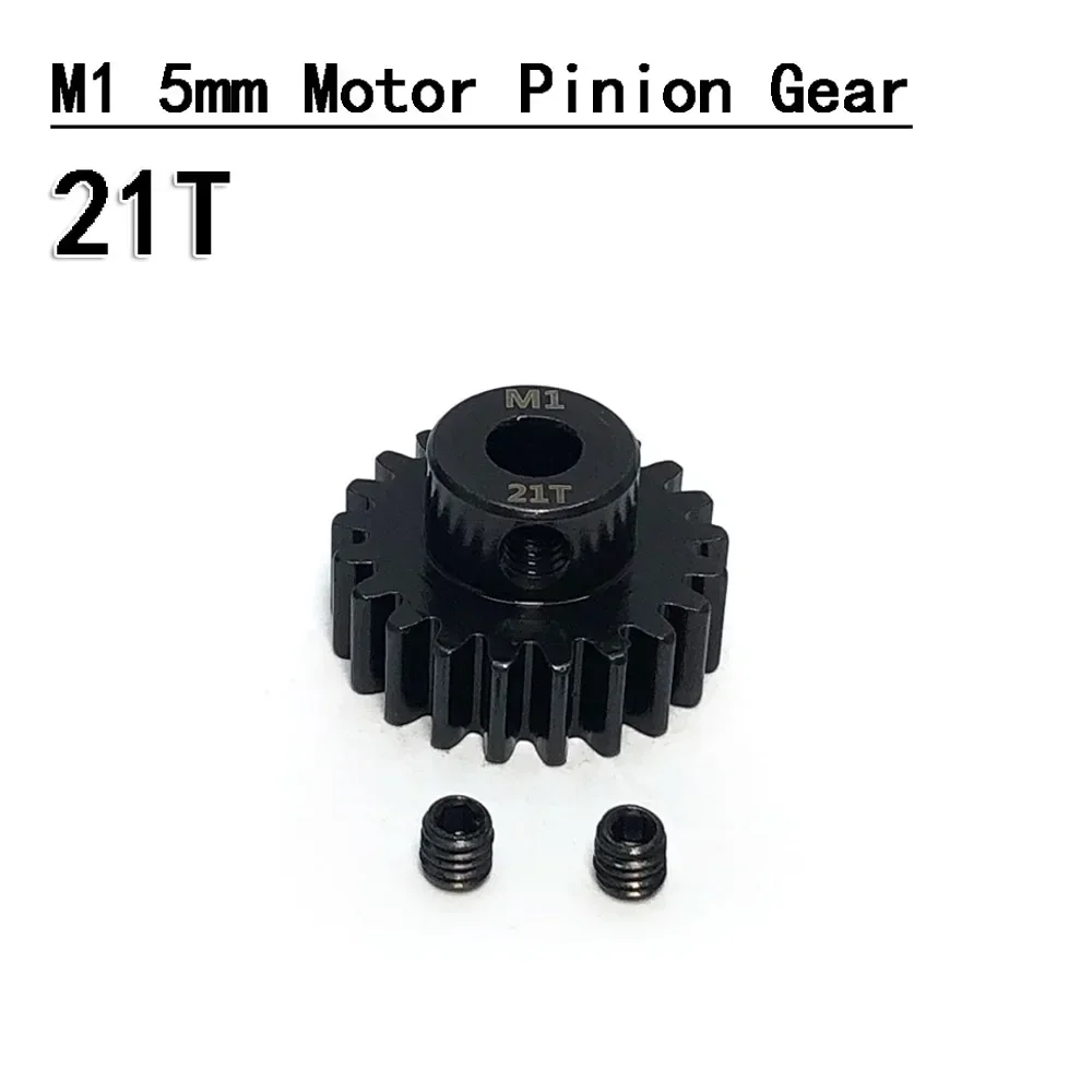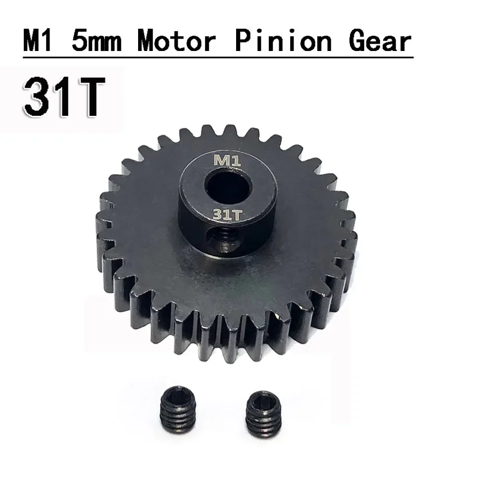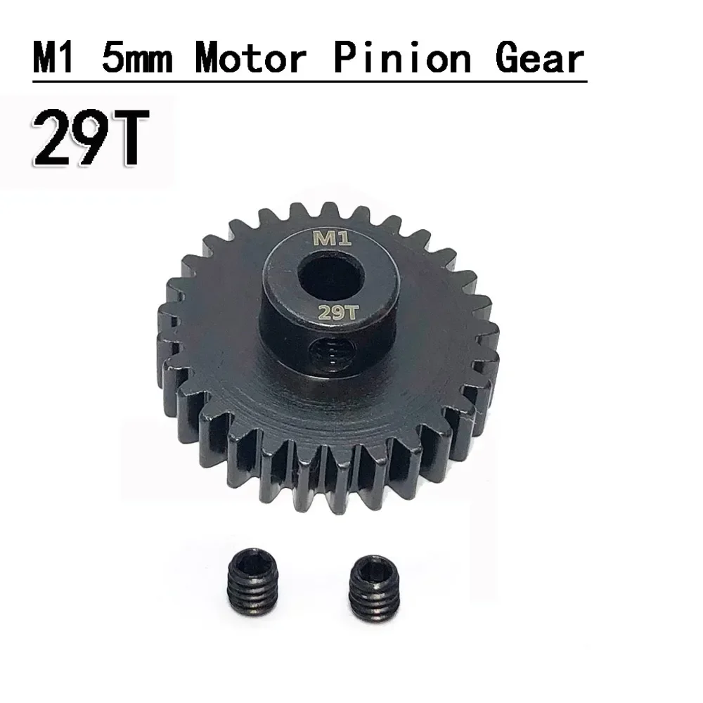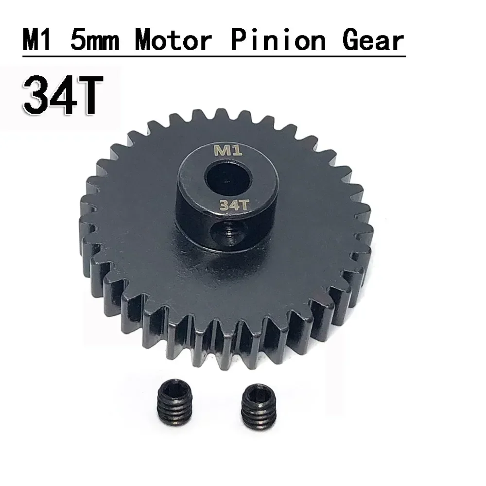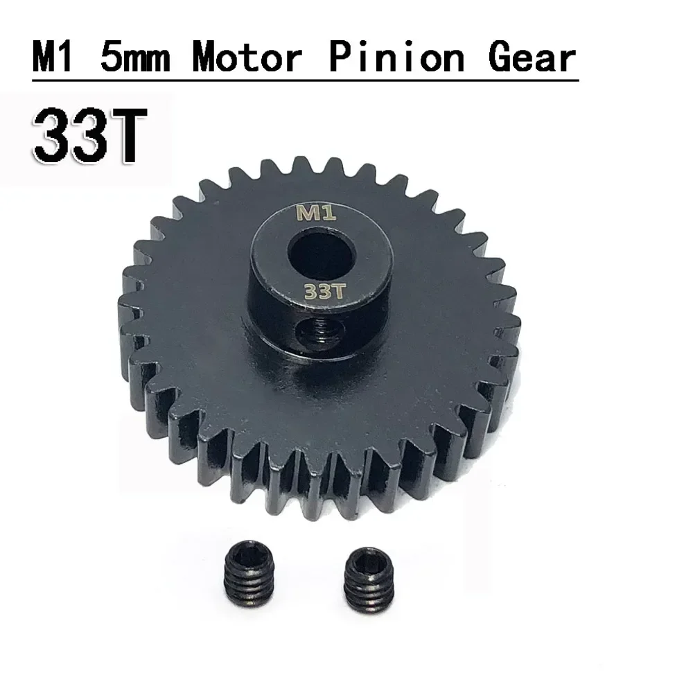 Our pinion motor gear is made of high-quality 45# material, blackened and hardened for durability and precision. It features a M1 modulus and an inner diameter of 5mm with a machine screw. The T number ranges from 11T to 30T, providing a wide range of options for your RC buggy, truggy, or monster truck.