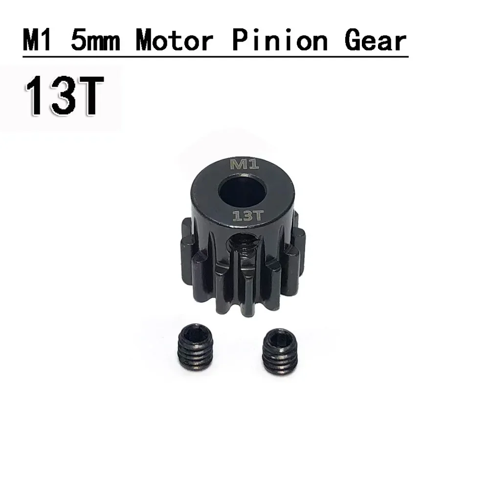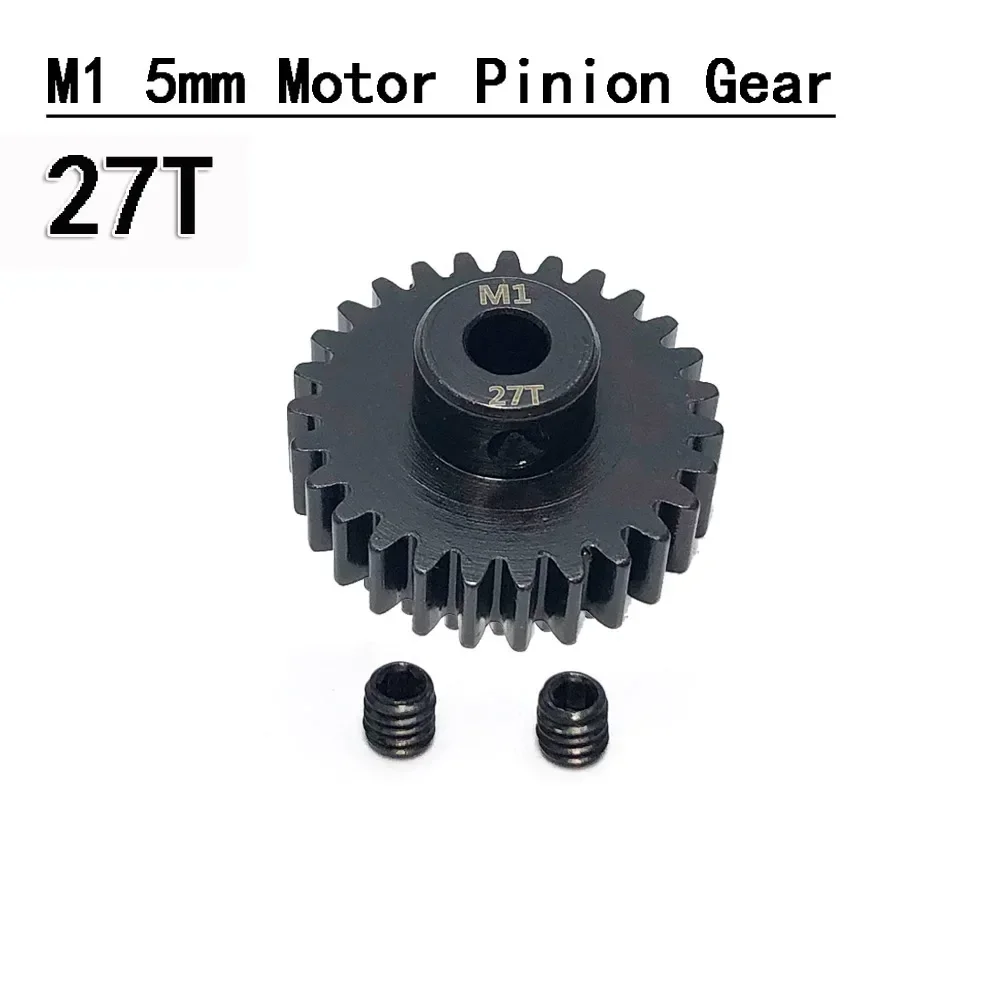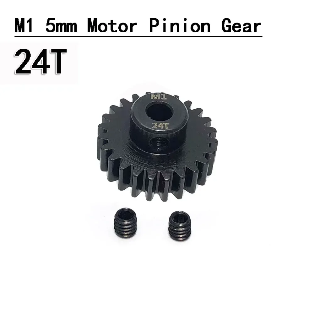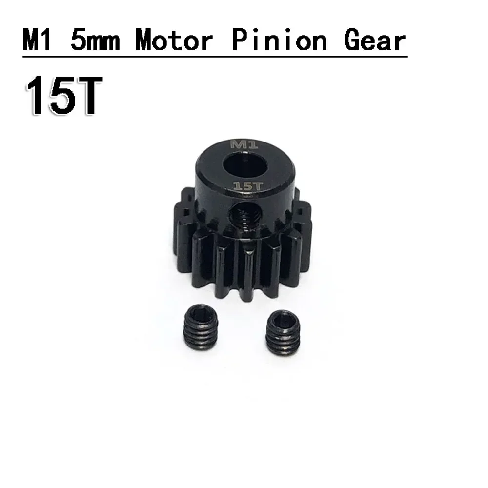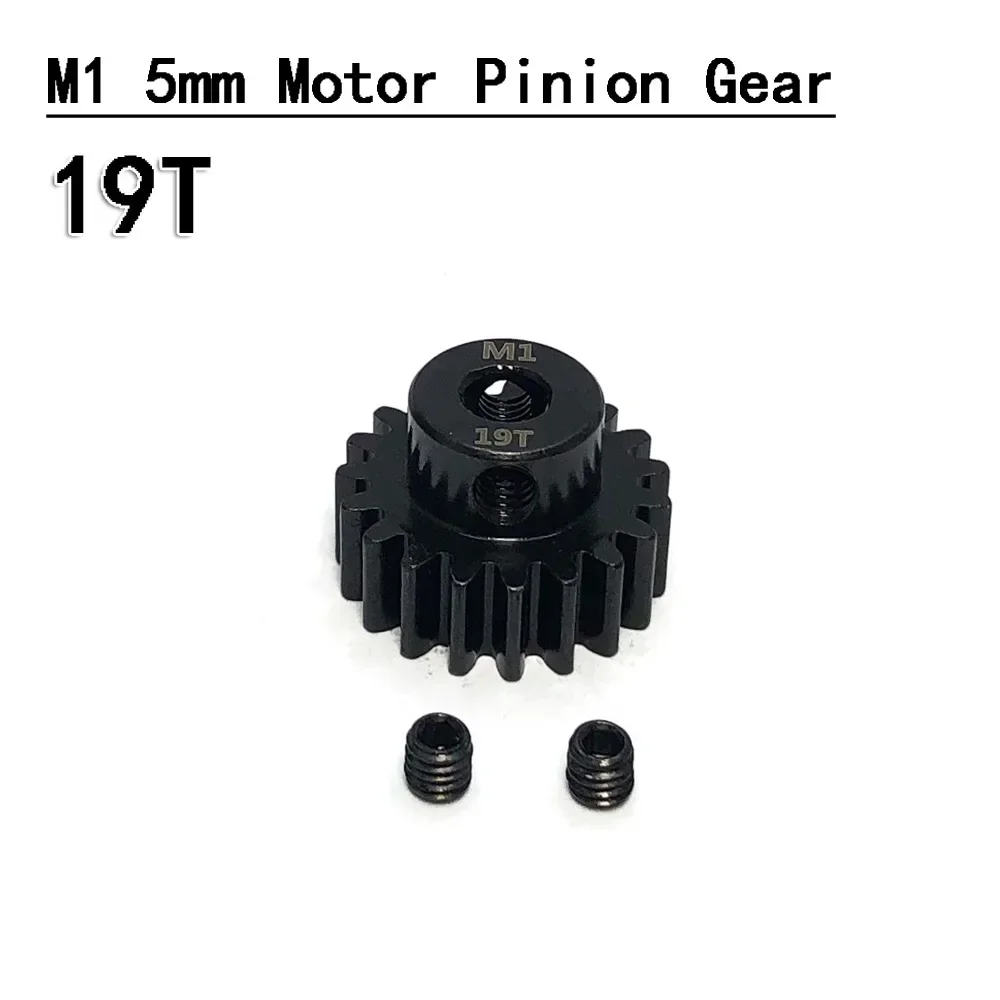 Our pinion motor gear is made of high-quality 45# material, blackened and hardened for durability and precision. It features a M1 modulus and an inner diameter of 5mm with a machine screw. The T number ranges from 11T to 30T, providing a wide range of options for your RC buggy, truggy, or monster truck.