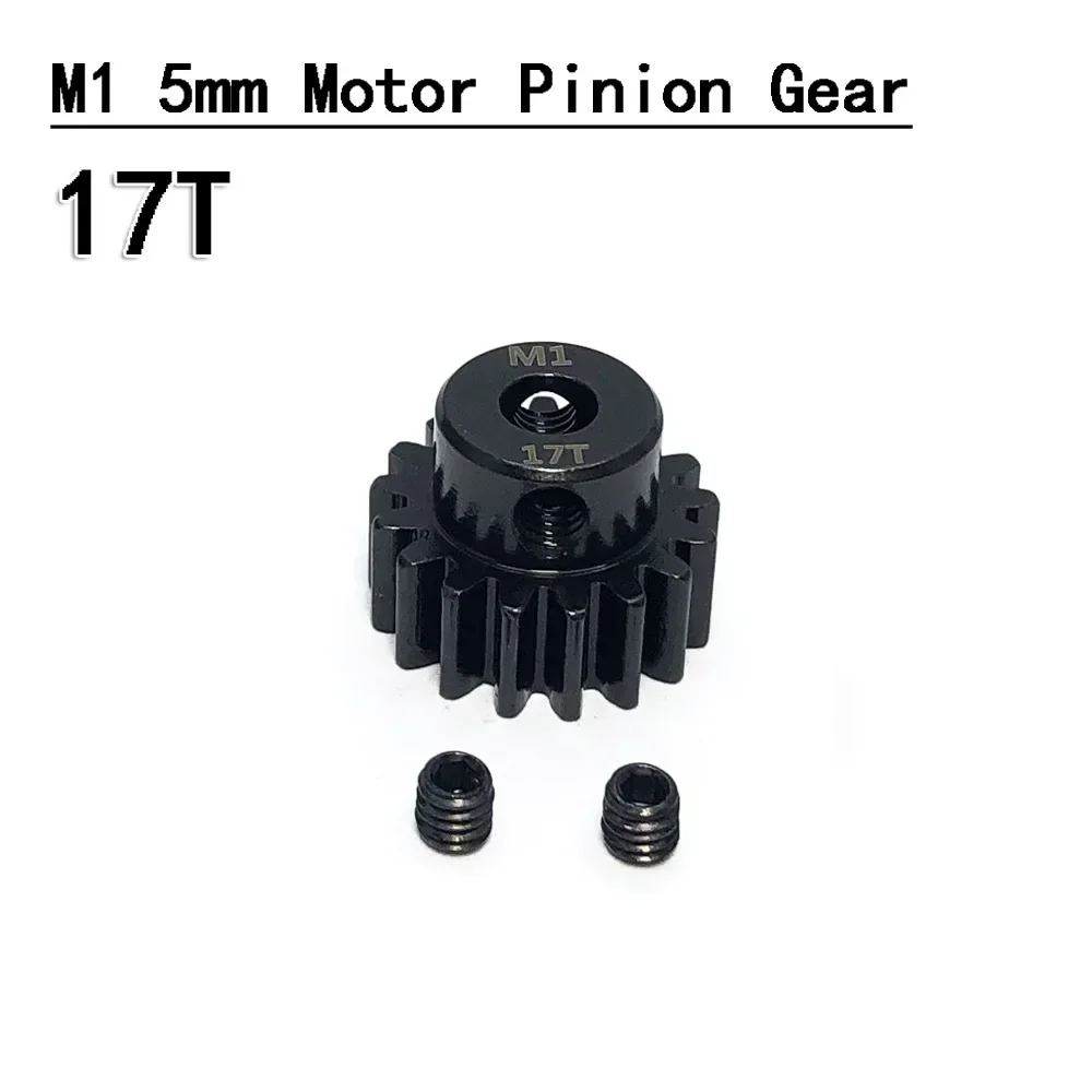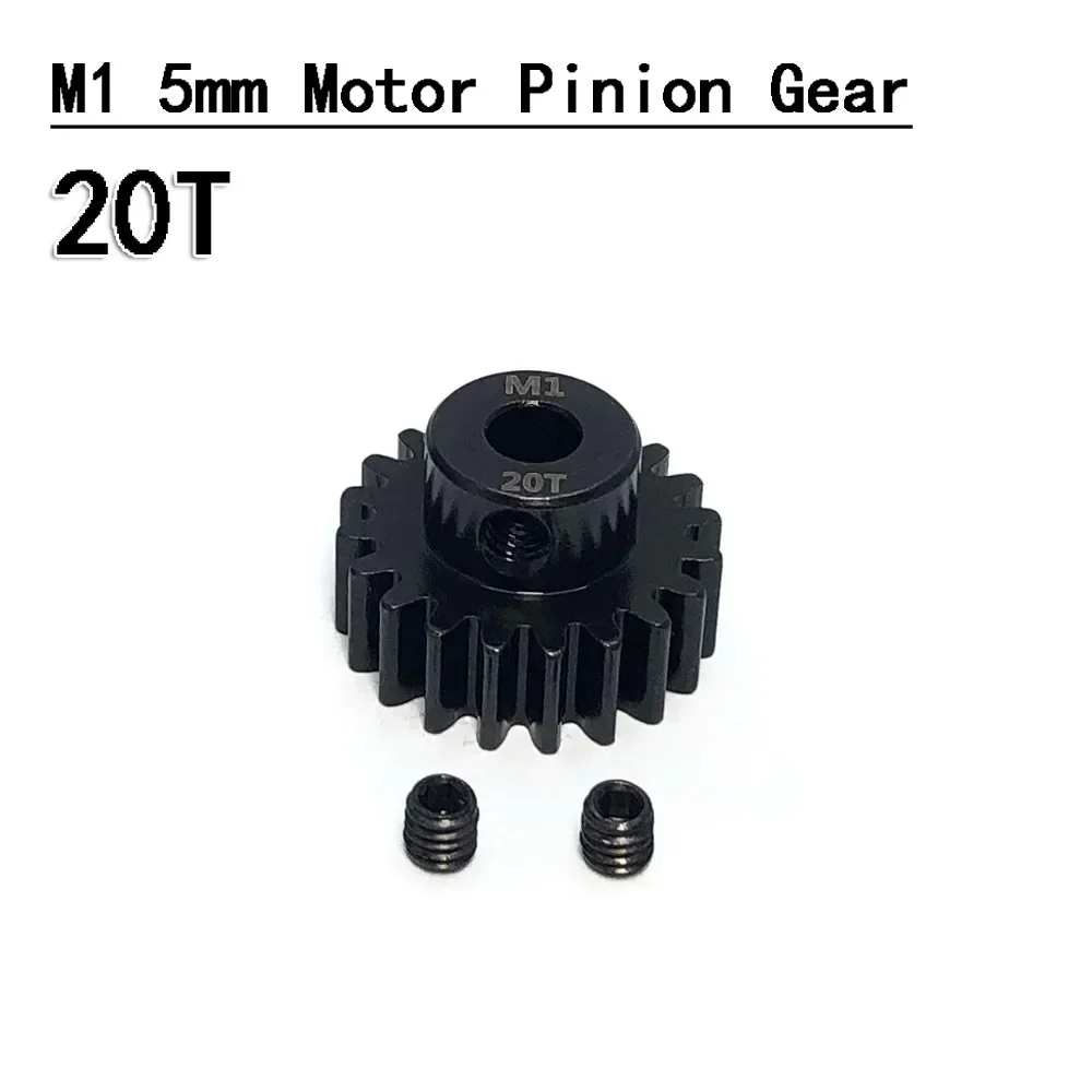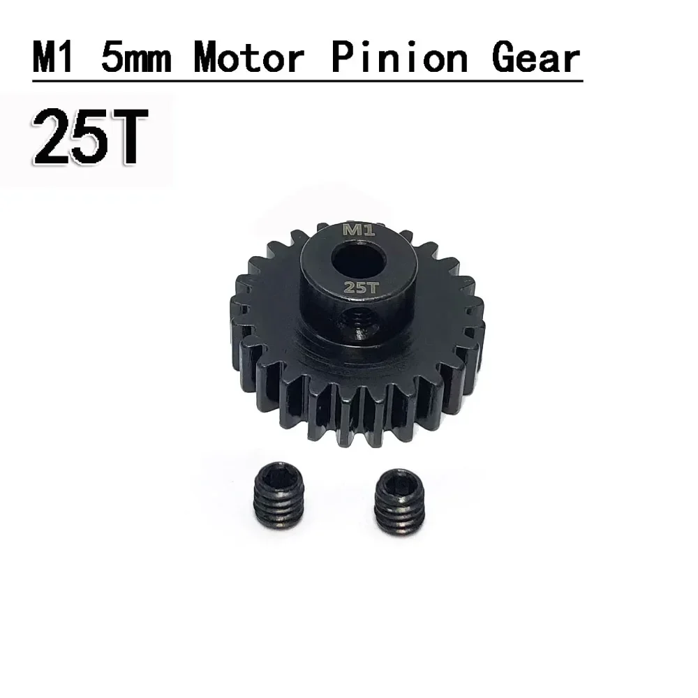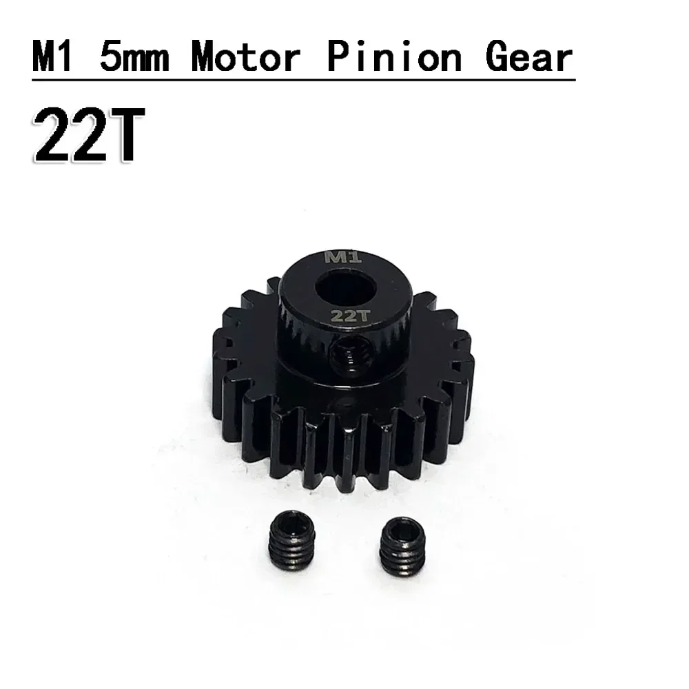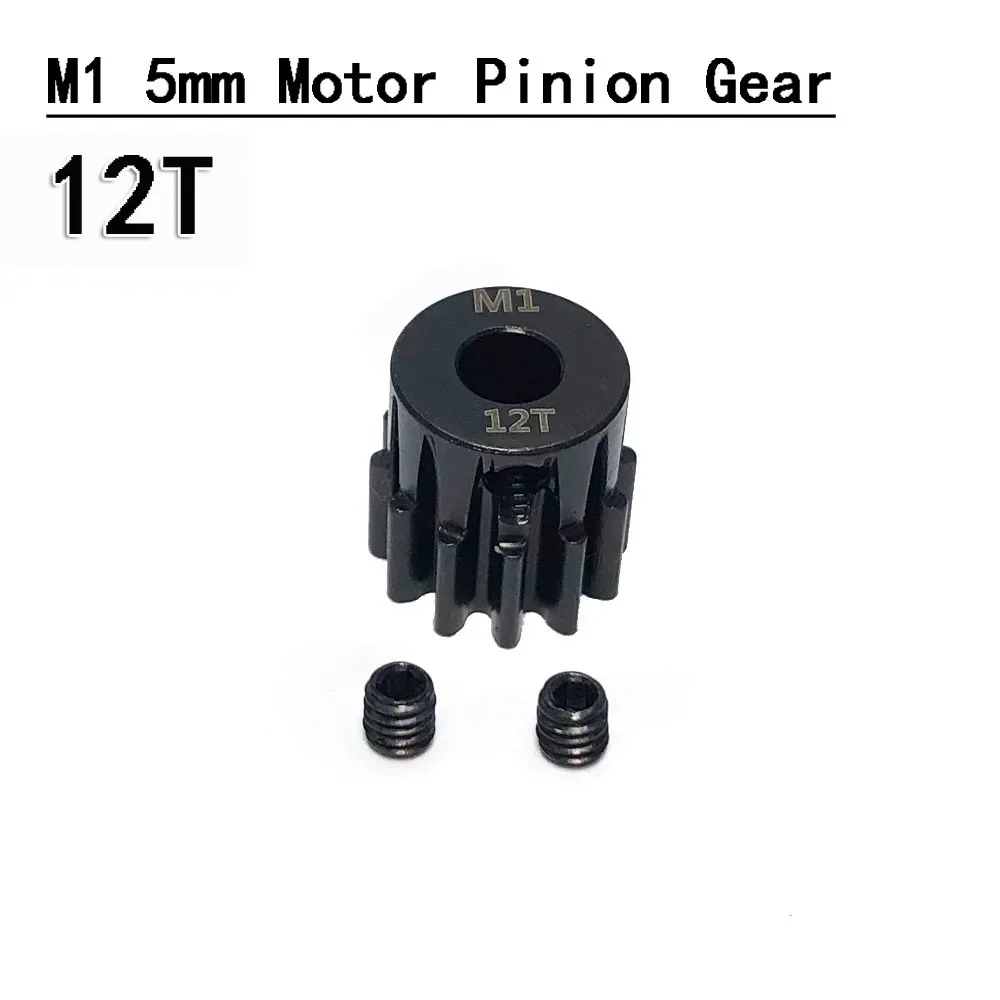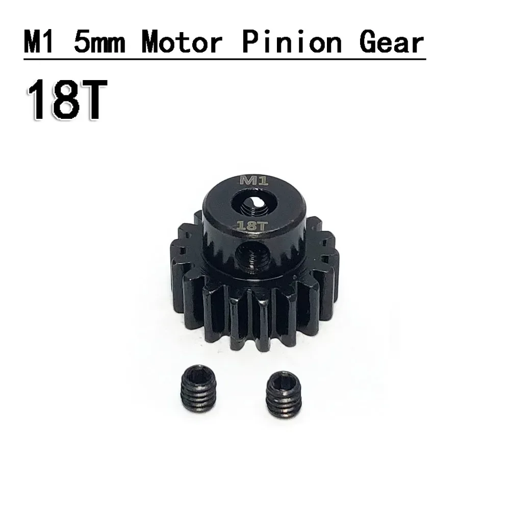 Our pinion motor gear is made of high-quality 45# material, blackened and hardened for durability and precision. It features a M1 modulus and an inner diameter of 5mm with a machine screw. The T number ranges from 11T to 30T, providing a wide range of options for your RC buggy, truggy, or monster truck.