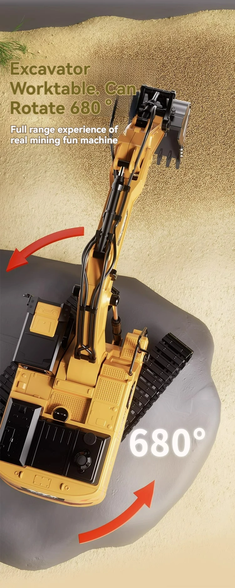 Featuring a durable aluminum alloy construction, this excavator dumper car is built to withstand the rigors of heavy use. The adjustable seat and ergonomic design ensure comfortable operation, while the high-quality battery provides up to 30 minutes of continuous runtime. Additionally, the RC excavator comes with a rechargeable battery, making it an eco-friendly option for parents and kids.
