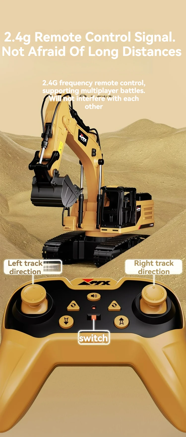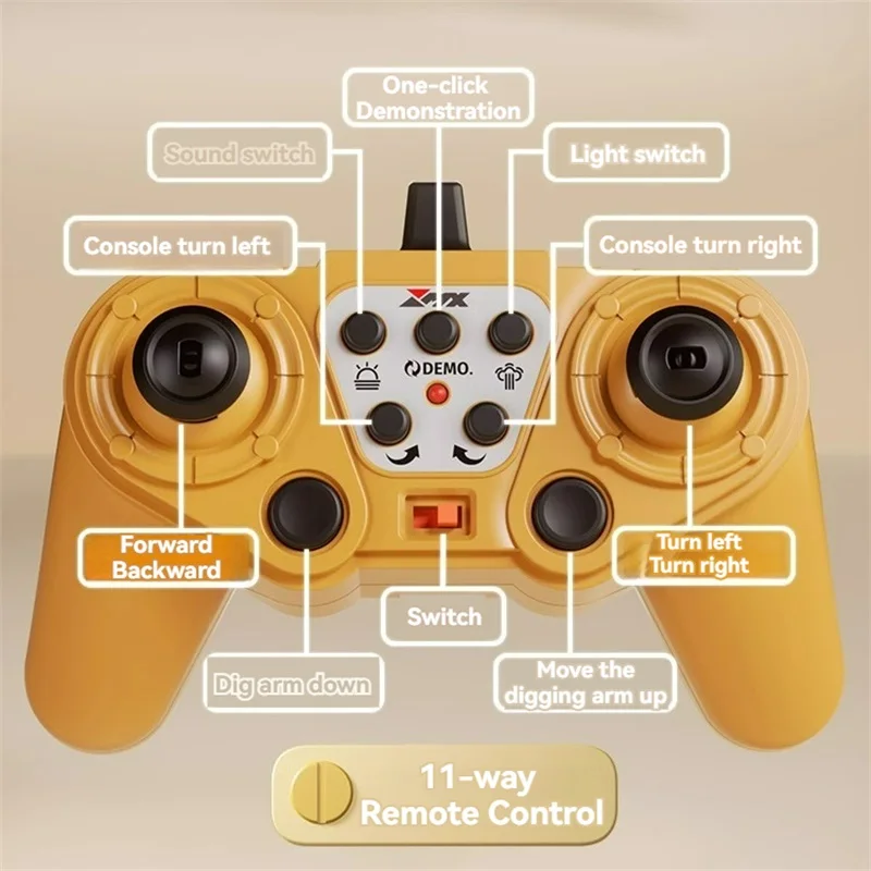 . This remote-controlled alloy engineering vehicle is perfect for kids and adults alike, featuring a 2.4G frequency transmission system for stable communication and control. With its powerful motor and advanced crawler mechanism, this RC toy can tackle any terrain, making it ideal for outdoor play or indoor simulation.
