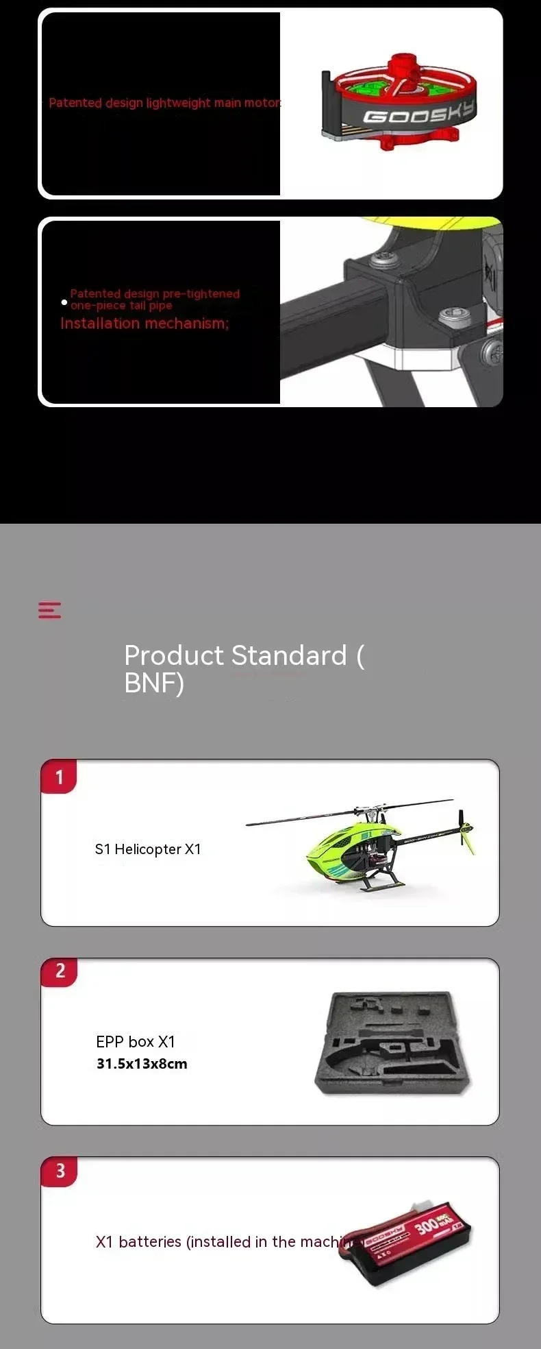 Rc Hot Goosky S1 Bnf/Rtf 6ch 3d Stunt Double Brushless Motor Direct Drive Motor Flybarless Direct-Drive Helicopter