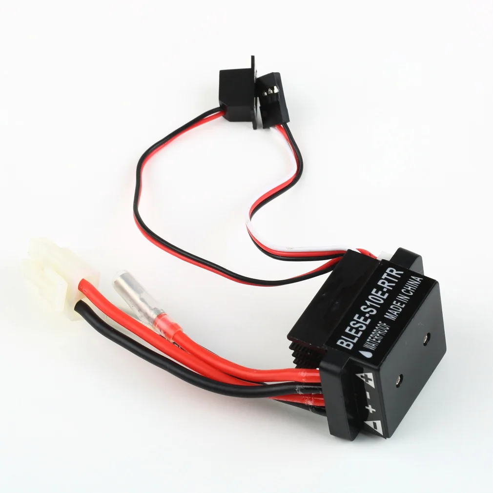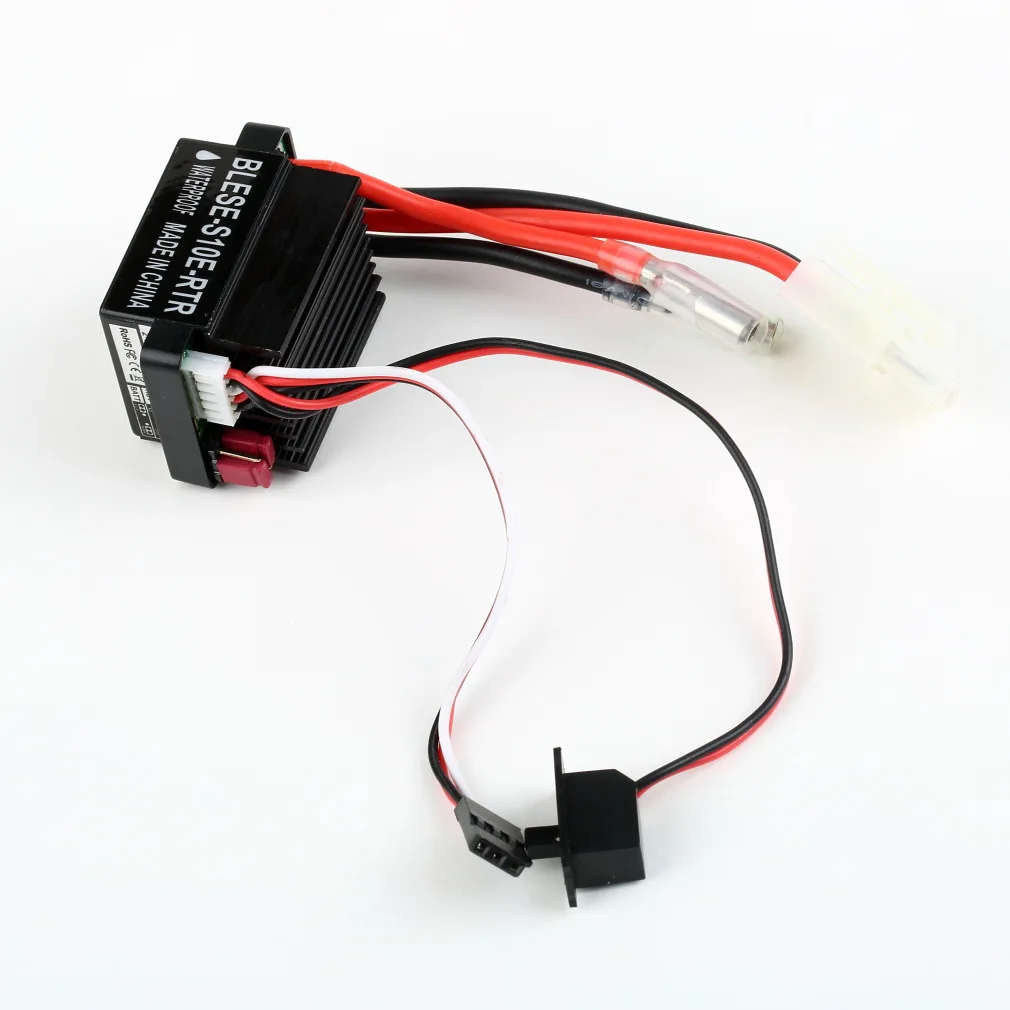 Key features include a built-in BEC (Battery Eliminator Circuit) that powers the receiver from the motor battery, automatic cutoff of motor power to preserve receiver power as the battery becomes depleted, and a reversion function for added safety.