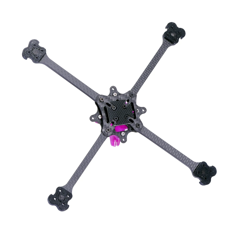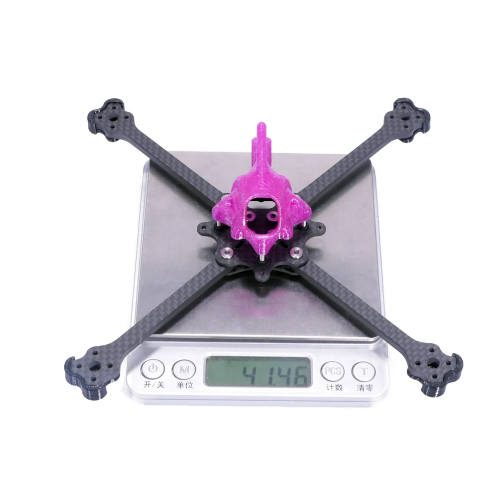 Long Range FPV RC Racing Drone Quadcopter Frame Kit for F411 aio, suitable for 5-5.2 Inch propellers and 14MM/Nano series FPV cameras. Made from 3K Carbon Fiber/TPU Canopy, with motor hole distance of 12*12MM and FC hole distance of 25.5×25.5 /26.5*26.5 / 20X20 /16*16MM. Weight: 41g.