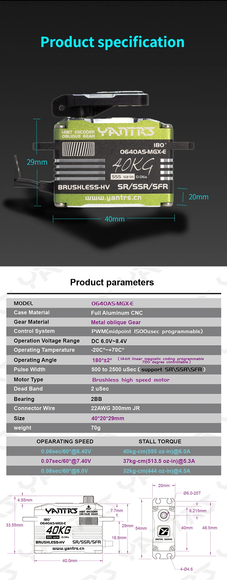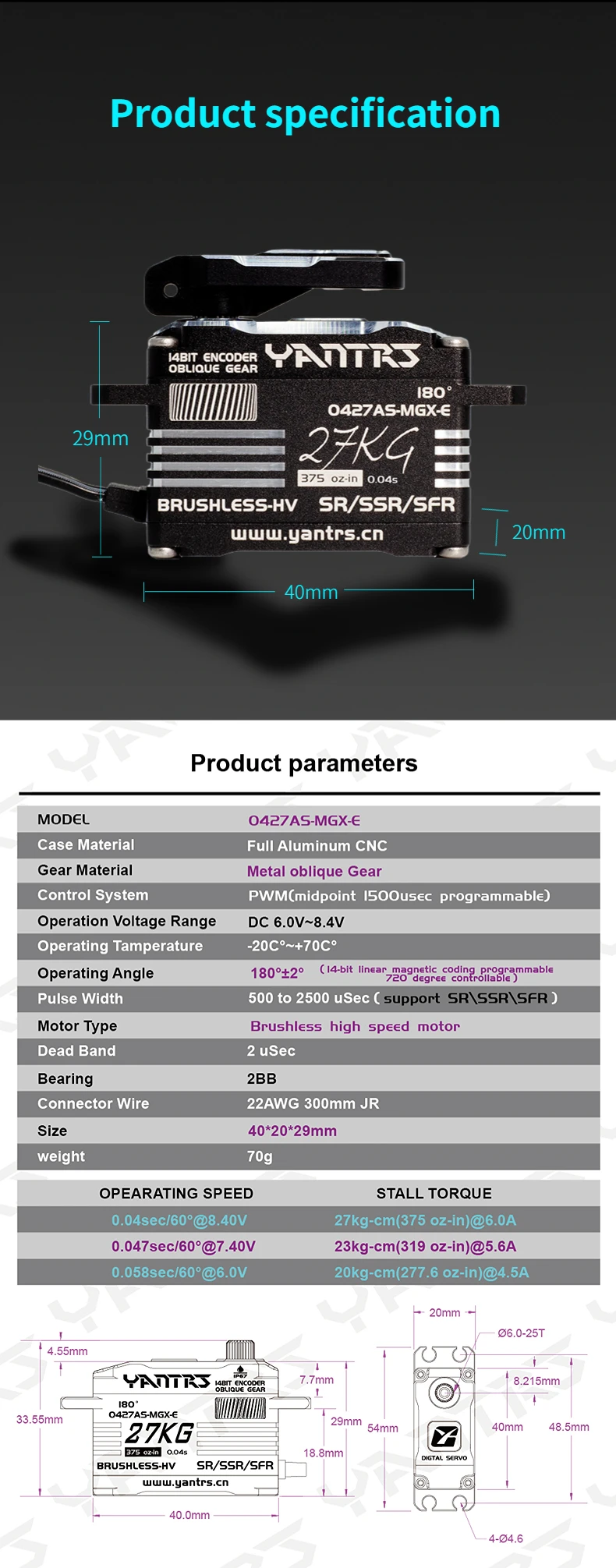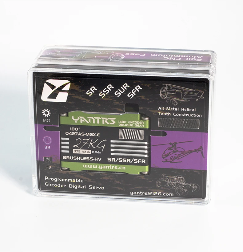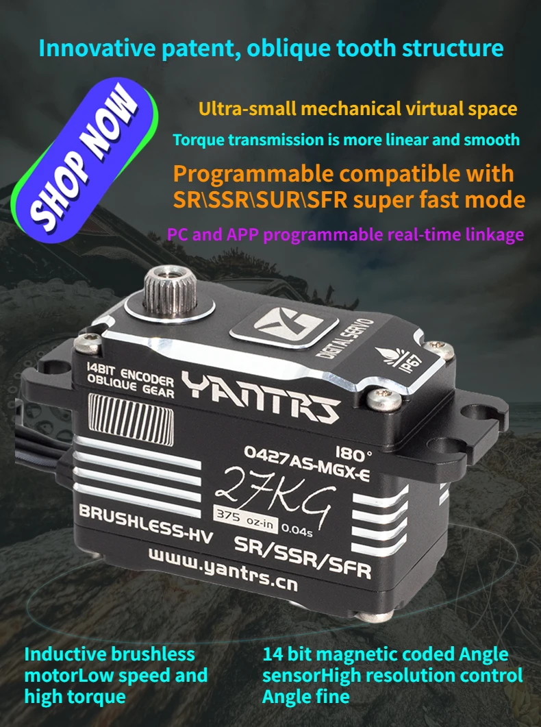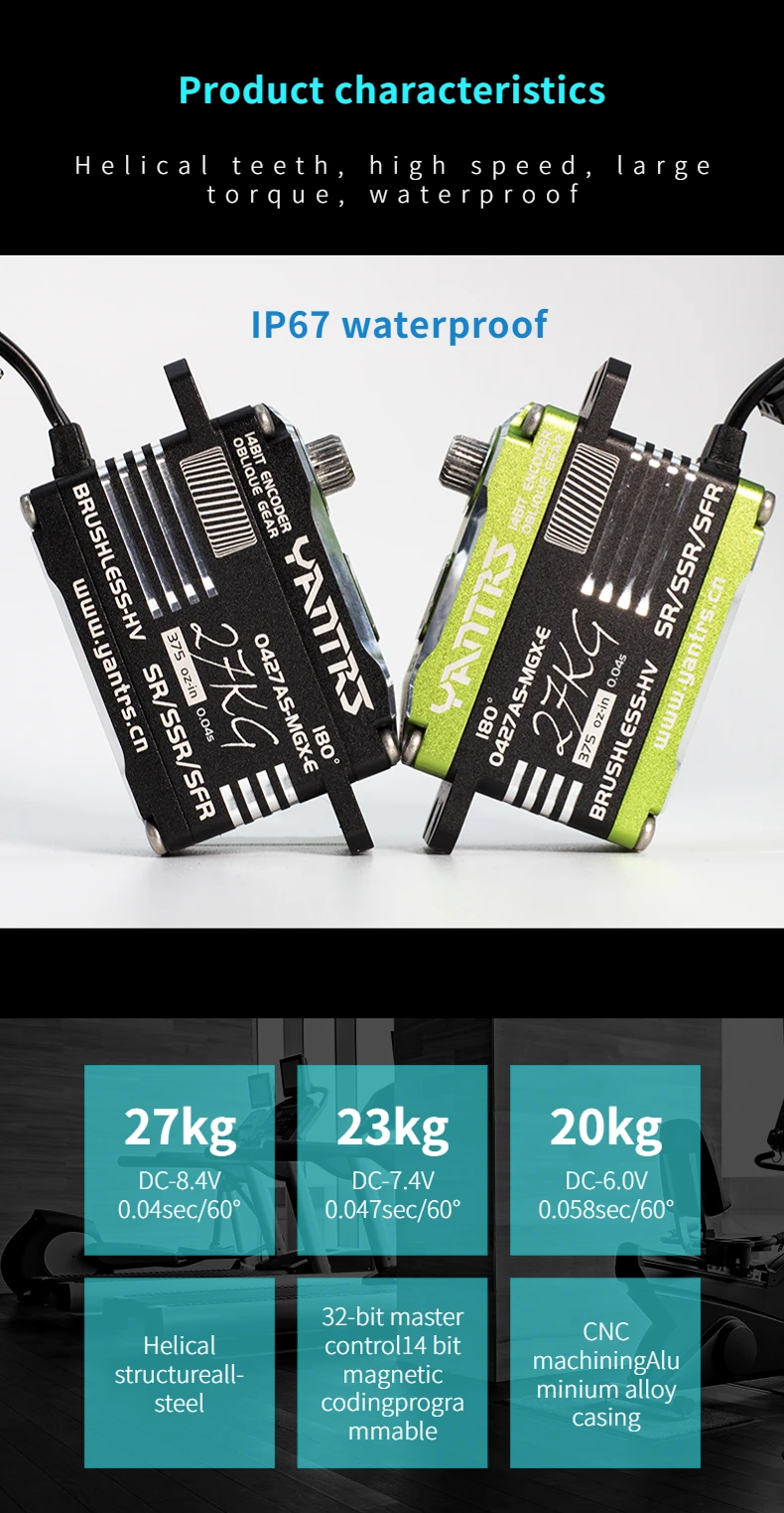 Upgrade your RC helicopter or fixed wing model with the Yantrs Low Profile Brushless Waterproof Servo, featuring 27KG 8.4v digital magnetic sensing and waterproof design for precise control and reliability.